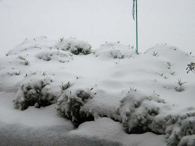 Yester day it was 74 degrees here. Today, THIS! I mean really?! Seriously?! It's still going on and we're supposed to get up to 12 inches (although it's melting because the ground temp is 45).